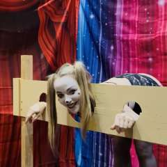 MelonieNosha had her head turned into a pie sandwich by Big Bird the Clown