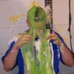 Muddylex was surprised by PrinceofPie with a big sloppy cream pie to the face